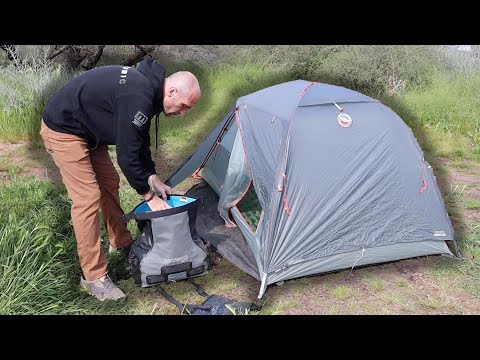 1. A camping bed to have a good night and a french press for coffee in the morning is also a good idea. A great tent has place for the bike and the biker(s).